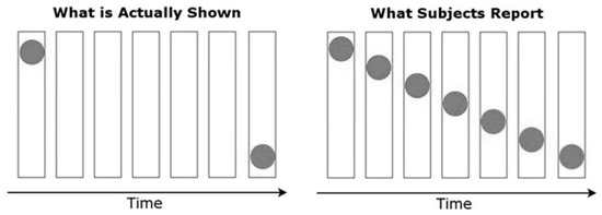Another example, from the visual domain, is as follows: A dot is displayed on the screen, and 200 ms later after the first dot disappears, another dot is displayed on another place on the screen. What the experience that is obtained in consciousness is, is that of a dot moving from the first position to the second position. The situation is illustrated in Figure 10.