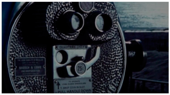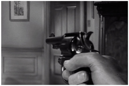 Within this sequence, the view from the camera becomes a surrogate body for the spectator. I adopt the term “surrogate” from David Bordwell’s [26] paper, “Camera Movement and Cinematic Space”, which considers camera movement as “a persuasive surrogate for our subjective movement through an objective space” [26] (p. 23). A surrogate, as Bordwell [26] states, is “a basis for the orthodox comparison between the camera and the human body”. In this instance, the surrogate film body is an unseen vessel that simultaneously extends and limits the corporeal sensations of the viewer, which, as Ihde [26] (p. 20) identifies, is a key concept of the embodiment relation. The subjective viewer is simultaneously extended into and cordoned off from the diegetic world of the film (the noema) through the noesis of the camera technology, which contributes to a perception of unease. As mentioned above, I have come to notice that the POV aesthetic is used primarily in narrative cinema to represent three specific types of surrogate body which consists of the killer, the victim or the socially awkward character, to which Lewis from Peeping Tom is a case in point.
