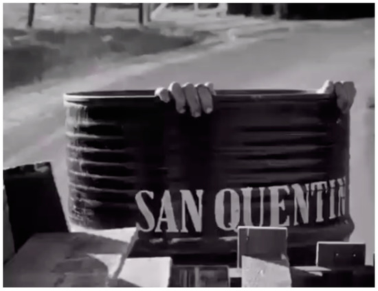 An early example of this can be seen in Delmer Dave’s film, Dark Passage, which presents a story through the eyes of a corrupted and detrimental body vessel in the form of Vincent Parry (Humphrey Bogart), an escaped convict from San Quentin Prison serving time for the alleged murder of his wife. The film begins with Parry’s breakout, portrayed with an establishing shot of a truck leaving the prison before closing in on the image of a metal barrel. Fingers surreptitiously splay out onto the brim of this barrel, denoting the concealment of someone inside (Figure 11). The barrel then begins to shunt back and forth, eventually spilling off the truck and rolling downhill into an adjacent field. As the barrel gyrates, we suddenly adopt a subjective view from inside the tube looking out upon a spinning world. When it finally rests, Parry exits the drum, but the mise-en-scène holds its position for a few seconds from inside the barrel, watching as the convict strips his prison garb.