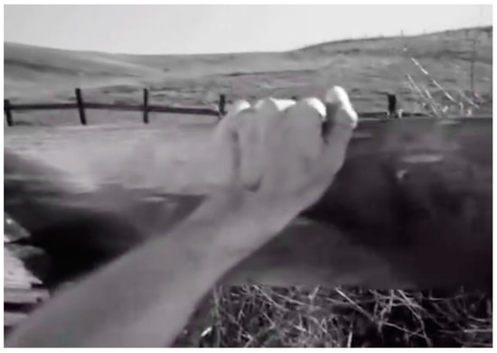 As stated, anxiety through the subjective surrogate killer is one part of what hap-tech narration entails. Another relates to a deficient type of body vessel that is portrayed through the notion of a fictional victim. Each of these negative surrogate body vessels fall in line with Maxine Sheets-Johnstone’s [44] book, The Primacy of Movement. Within this work, Johnstone explores how a person’s movements can define their character. As she argues, humans “intuitively equate aliveness with movement” [44] (p. 117) and do so from birth where we immediately come into the world kicking and screaming. “This primal animateness, this original kinetic spontaneity that infuses our being and defines our aliveness, is our point of departure for living in the world and making sense of it” [44].