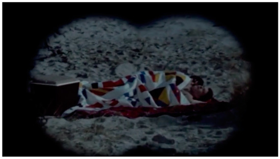 In Point of View in the Cinema: A Theory of Narration and Subjectivity in Classical Film, Branigan [32] claims that a POV is an approximation of what a character sees from their vantage within the film’s diegesis, while a subjective shot is the precise perception of a character, as if the viewer is anchored inside of them. This is what George M. Wilson [33] (p. 86) calls “directly subjective narration” and what I call the POV shot. Eaton’s use of point-of-view, like Branigan’s, is one that portrays the character in the mise-en-scène while inviting the viewer to see events from their perspective. Hap-tech narration, however, utilises a POV shot to precisely see what a character sees while keeping them distant from the character, distorting such identification.
