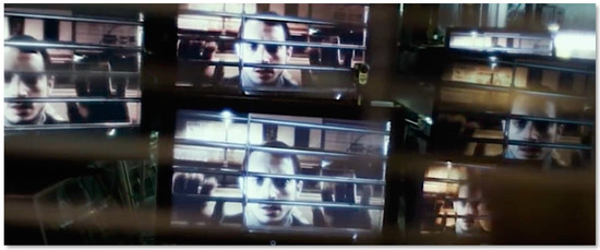 Thus, who we are, according to Johnstone, is defined by how we move as we develop a repertoire of “‘I cans’: I can stretch, I can twist, I can reach, I can turn over, and so on” [44]. As she notes, humans kinetically grow into their bodies and discover themselves through such movement. Following Sheets-Johnstone, hap-tech narration involves a surrogate character’s movements (represented by the subjective camera), affording the spectator a feeling of “aliveness”, and sense of being-in-the-world. Access into the film world through the camera is, thus, balanced by the screen and camera movement, which limits and constrains corporeal freedom. Inevitably, this produces a deviant, corrupt or deficient type of body vessel, which is the essence of hap-tech narration.