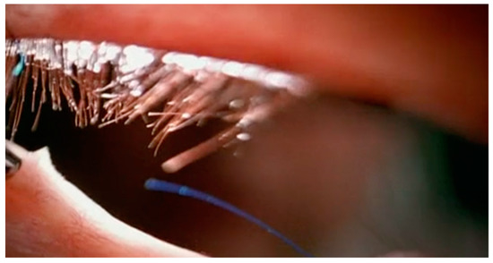 The most adverse use of victim experience within the film is a distressing scene in which a neurologist informs Bauby that his right eye must be occluded to prevent from turning septic. Tethered to his gaze, the viewer undergoes this surgery too, watching out of the bad eye as the lid is pulled down and stitched closed (Figure 22, Figure 23 and Figure 24).