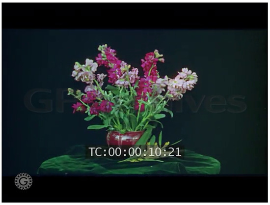 However, to think about cinema with plants is not necessarily to focus on representation alone 8. To return to Étude des fleurs and Bouquets dans des vases, the most relevant aspect of these pictures concerns our perception of their colours and what they tell us about filmic flowers. If their vibrant hues strike us as nonnatural (in particular the chronochrome florae of Bouquets dans des vases), it is probably because of the synthetic, celluloid character of these specimens—yet another iteration of what Sarah Cooper has aptly named “techno-flowers”, flowers that come to matter through cinematic means and, one can add, through very concrete, material supports, such as the flexible and highly-flammable material known as celluloid [7]. Curiously, before it became the motion pictures’ stock of choice (and a synonym for cinema generally), celluloid—essentially composed of nitrocellulose and camphor (a plant-derived chemical in its natural form, synthetised in the early 20th century)—had also transformed the buoyant industry of artificial flowers. Indeed, if silk and fine cotton remained the privileged choice for dressmakers and milliners excelling in the fine art of fabricating flowers, celluloid imposed itself as a cheaper alternative to organic funeral wreaths 9. Jean-Luc Godard (incidentally, an exquisite filmer of flowers and gardens 10) seemed to recall this curious fact when he observed, in his Histoire(s) du cinéma (1988–1998), that “Technicolor films will use the same dominants as funeral wreaths” [8]. Whatever the case, celluloid wreaths and artificial plants are as much the child of chemical industries as aniline dyes, colour filters and special film stocks manufactured during cinema’s quest to achieve so-called “natural colour” 11. Relying on voracious energy economies 12, all of these products leave their toxic imprint on the planet, the environmental impact of film inviting us to reframe the old question of ontology. As pointed out by Anat Pick and Guinevere Narraway (drawing on Nadia Bozak’s The Cinematic Footprint [9]), a retooled filmic ontology stresses cinema’s extractive nature by reconsidering indexicality as the “hinge or hook that connects the [photographic and digital] image to the world” (p. 3, [10]) 13.