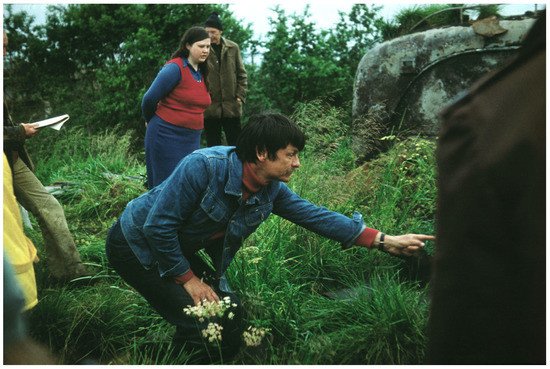Amongst these non-exhaustive examples, Tarkovsky’s Stalker is certainly one of the most striking. The ruderal is much more than a “simple” landscape: it tells us a “rush of troubled stories” about “contaminated diversity” (p. 34, [11]). In a film otherwise known for its allusions to the environmental dangers of nuclear waste, ruderal vegetation plays a prominent role, both in the city’s apocalyptic wasteland and in particular in the Zone. As explained by the Stalker, the latter is a “very complex maze of traps”: “as soon as humans appear, everything begins to change” [20]. For this reason, the Zone has been likened to the phenomenological reality of the Anthropocene (a notion not yet coined at the time of the film’s shooting) 34. Concretely however, and in line with Tarkovsky’s refusal to understand it in allegorical or metaphorical terms, the Zone (from the Latin zōna, “belt, girdle, imaginary band circling the earth”) is a ruderal milieu, a fragile and unstable environment haunted by incessant transformation and precarious survival. A place where the Stalker, the Professor and the Writer (in other words, the Human) are all affected by the more-than-human. Beyond its remarkable depiction of ruderal landscapes, Stalker also tells us other stories: cacophonous tales about our entangled vulnerability, linked to historical contingencies and the “indeterminacies of encounter” (pp. 46–47, [11]) 35. According to camera technician Sergey Bessmertny, the dam and abandoned power plant on the Jägala river, Estonia, where most of the shooting took place, “had an expressive texture: cracked, lichen-covered concrete broken glass, oil stains” [21] (Figure 4 and Figure 5) 36.