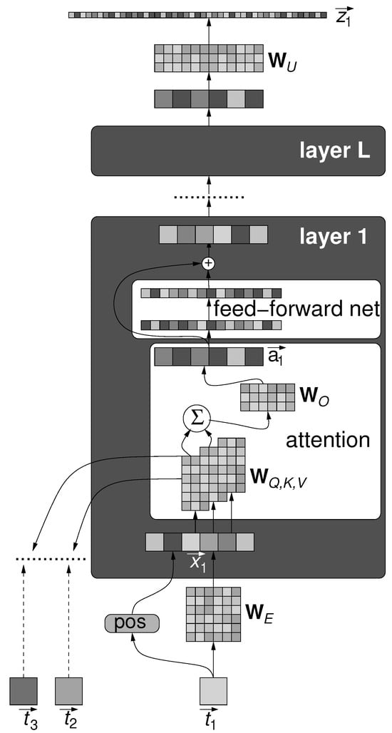 14]. The original Transformer was designed for translation, so it includes an encoder for the input text and a decoder for the text generated in a different language. A simplification was later adopted by GPT (Generative Pre-trained Transformer), which consists only of a decoder part, primarily for generating text by completing a given prompt [
