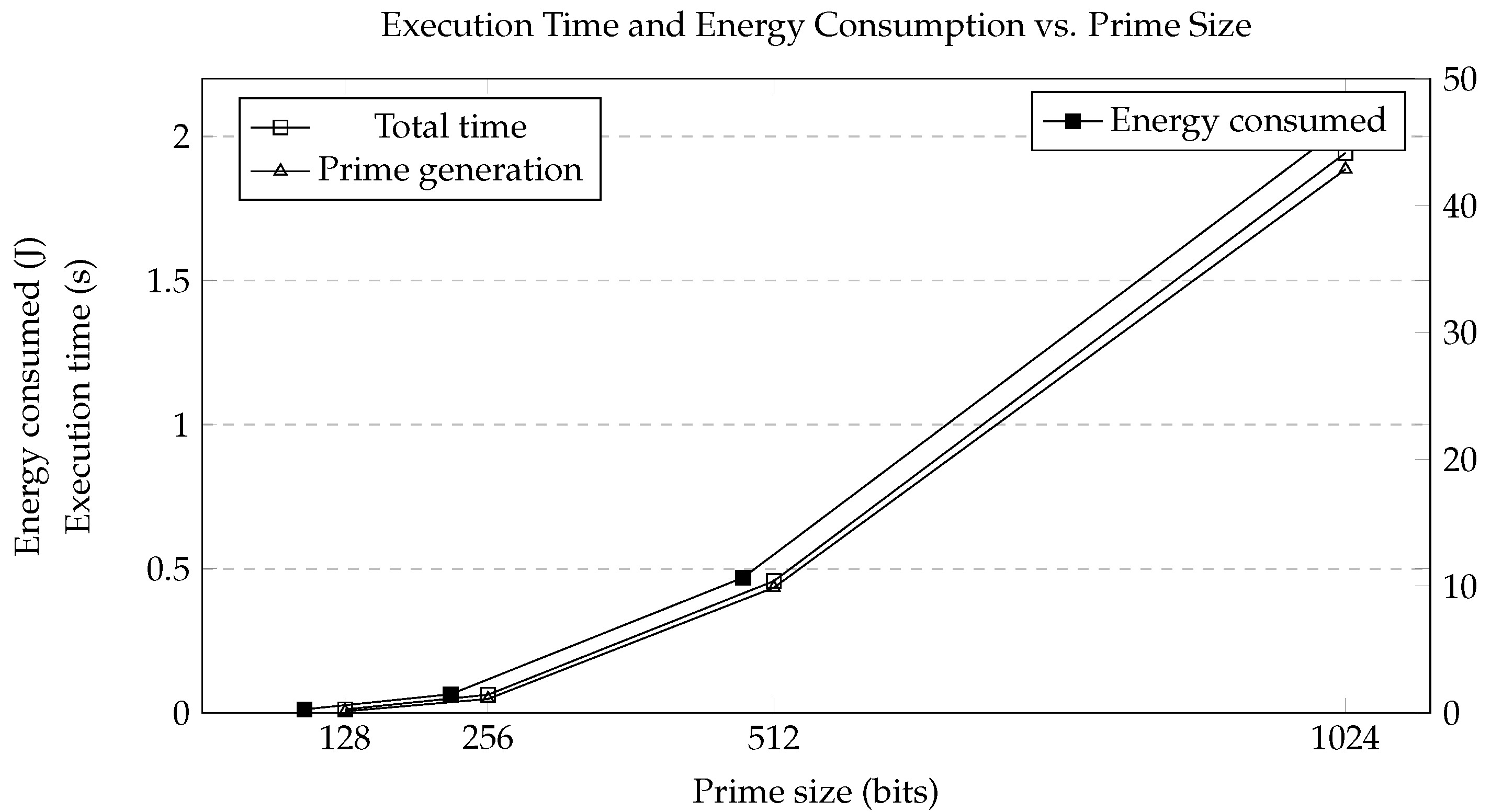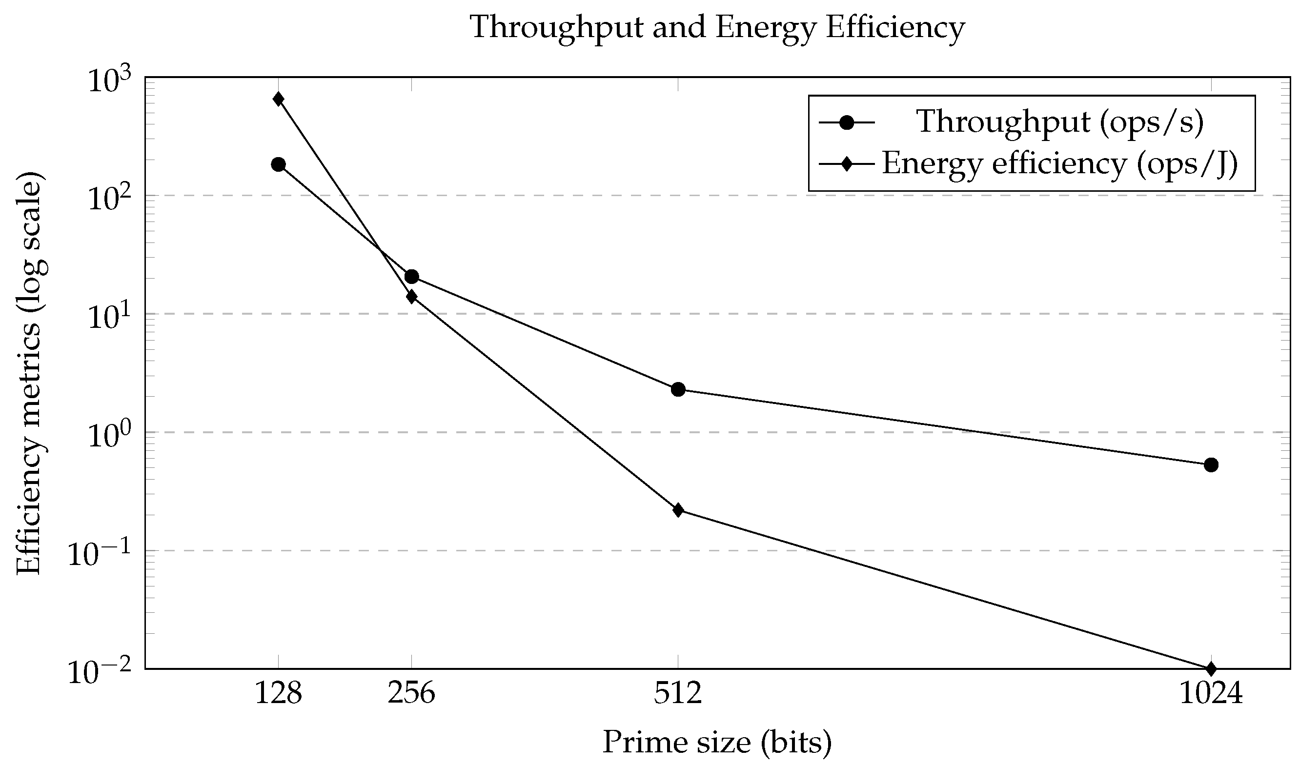 The experimental evaluation for prime sizes between 128 and 1024 bits confirms the practical feasibility of the underlying matrix operations on general-purpose hardware, with execution time and energy consumption growing with the bit-length of the prime in line with the cost of arithmetic and matrix exponentiation over . For smaller parameter ranges, the performance remains within practical bounds. These observations support the practical implementability of the proposed algebraic constructions, without implying concrete cryptographic security levels.
