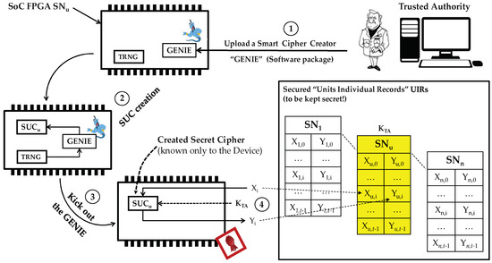 - The Trusted Authority (TA) uploads a software package as a smart cipher designer called “GENIE”. “The GENIE concept is taken from 1001-night miracles as a powerful, honest and obedient creature which can realize any wishes after getting out of Aladdin’s lamp”.