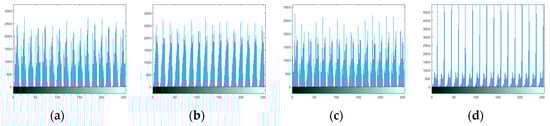 Histograms of distorted images: (a) Lena, (b) baboon, (c) pepper, (d) airplane.