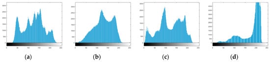 Histograms of original images: (a) Lena, (b) baboon, (c) pepper, (d) airplane.