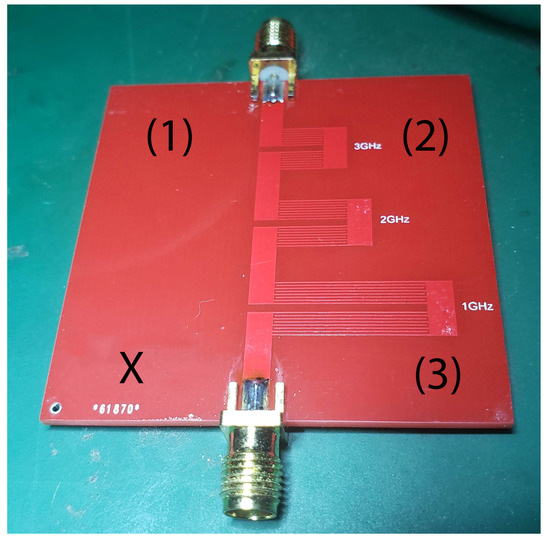 In these equations, is the transfer phase difference through the two lines at a particular frequency, is the difference between the physical lengths and is the electrical lengths of the lines. Our test board setup shown in Figure 8 which includes two microstrip lines of different lengths allows the impact of the SMA connectors on the response to be removed because all 4 cable-to-microstrip transitions are identical. This is achieved through subtraction when computing in Equation (11) [36]. This method has been shown to be capable of accurately measuring the dielectric constant of a substrate with an error margin between 0.5% and 1.0% [36]. We observed a variation of approx. 4.7% in the effective dielectric constant of the microstrip structure. Table 2 gives the average and computed using data from all 20 PCBs for a range of frequencies between 1.0 and 4.0 GHz. The for is shown in the right-most column.
