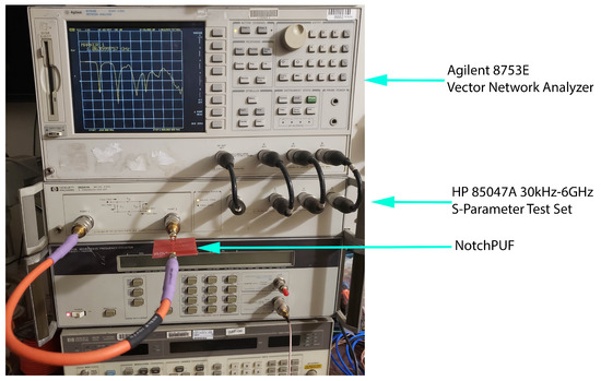 The filters are inserted in series to reduce the number of physical I/O driver resources and the amount of time needed for measurement and bitstring generation. To ensure that the PUF design produces bitstrings that are unique among the population, we design the filters’ dimensions to the minimum design rule sizes supported by the fabrication house, thereby maximizing the amount of manufacturing variation effects. The bitstring generation strategy utilizes multiple properties of the measured waveform. S-parameters describe the input-output relationship between ports (or terminals) in an electrical system. For instance, in the proposed 2 port system, the symbol represents the power transferred from Port 1 to Port 2. We fabricated 48 boards to validate the proposed PUF. The results show that the NotchPUF exhibits high levels of uniqueness and randomness, which are two important statistical properties associated with PUF-generated bitstrings.