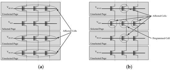(a) Affected cells from Read Disturb and (b) affected cells by Program Disturb.