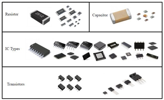 With the PCB supply chain being potentially highly unreliable and insecure, the US government has taken multiple steps to bring changes to the protocols [2,3]. However, assurance is limited by the lack of automatic inspection methods. Reference [2] reports that apart from integrated circuits (ICs), resistors, capacitors, and transistors are among the most commonly counterfeited components, these being the most predominant of electronic components on any given PCB; it is, therefore, essential to identify and validate these components in any PCB.