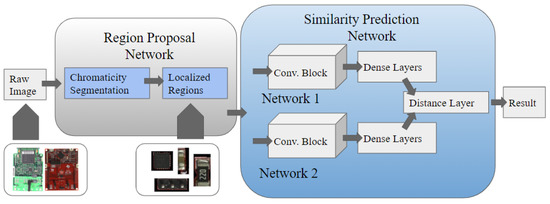 In addition to the region proposal network, ECLAD-net’s similarity-based classification network is also specialized to improve performance. This similarity-based network is effective for two reasons: (i) it learns discriminative information despite the low inter-class variance between resistors and capacitors, and (ii) it is capable of learning with few instances per class. In addition, ECLAD-Net can incorporate new information by either directly comparing the new samples with the old or by retraining on the newer samples and then comparing for a match.