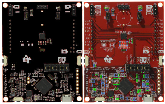 For this experiment, 26 images of PCBs are used in addition to the 8000 images of resistors and capacitors described in Section 4.1 and Section 4.2. Component images are used to re-train, through transfer learning, the previous object detection networks, which possess pre-trained weights. PCB images were then used to evaluate the object detection networks. Detection experiments follow similar train-validation-test splits, class balancing, and 3-fold cross validation as the component images in Section 4.2. Details on the implemented detection networks, along with any adaptations, are discussed in the following subsection.