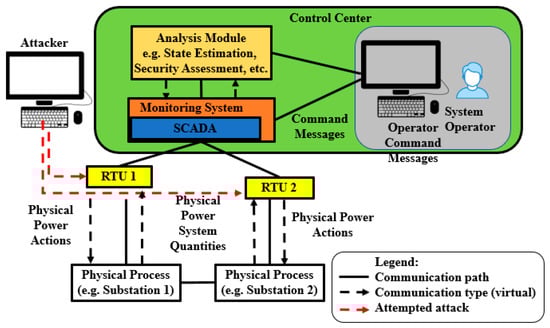 - Chukwuka, V.; Chen, Y.; Grijalva, S.; Mooney, V. Bad Data Injection Attack Propagation in Cyber-Physical Power Delivery Systems. In Proceedings of the 2018 Clemson University Power Systems Conference (PSC), Charleston, SC, USA, 4–7 September 2018; pp. 1–8. [Google Scholar] [CrossRef]