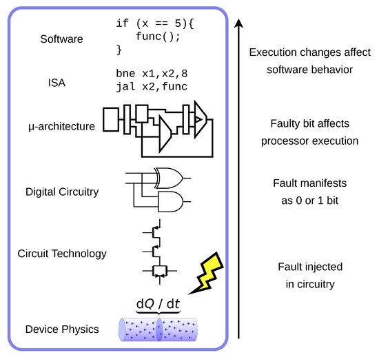 - Given-Wilson, T.; Jafri, N.; Legay, A. The State of Fault Injection Vulnerability Detection. In Proceedings of the Verification and Evaluation of Computer and Communication Systems—12th International Conference, VECoS 2018, Grenoble, France, 26–28 September 2018; Atig, M.F., Bensalem, S., Bliudze, S., Monsuez, B., Eds.; Lecture Notes in Computer Science. Springer: Cham, Switzerland, 2018; Volume 11181, pp. 3–21. [Google Scholar] [CrossRef]