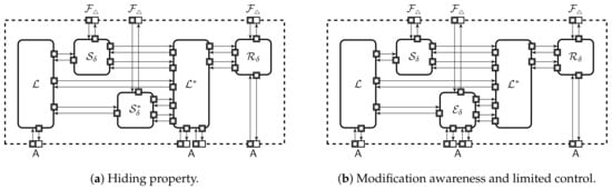 This definition allows us to specify a wide spectrum of security definitions [28,29,30,31]. We can consider only nonuniform polynomial adversaries or different corruption models, for example, choose between static vs adaptive adversary, or semi-honest vs. active security [32,33]. The protocol determines the set of unavoidable attacks. By tweaking the implementation of , we can model fairness [34,35], selective failure (abort) [36,37] and security against covert adversaries [38]. The exact definition of plausible environments determines how and where the protocol can be used securely. Restrictions on the correspondence define various flavours of black-box [39] and white-box security [40,41] or specify tightness requirements like polynomial and superpolynomial simulation [42,43]. Restrictions to and usually fix the model of corruption while constraints on place restrictions on the protocol scheduling.