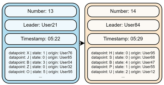 The blocks are hashed and connected by the appropriate block number and the hashing value of the previous block. There can only be one leader for any single block. Followers can add data to the block by sending a signed StateChange message consisting of a list of the new data point’s states. Each of these items holds the data point ID, new state value of the data point, original author of the message and the validators’ signatures. The number of signatures per message is defined by and can be different among agents based on their reputation values. Agents with higher reputation values have to provide more signatures, hence, more validators are required to verify the authenticity of the message. A leader adds the state-change message to the block if and only if: