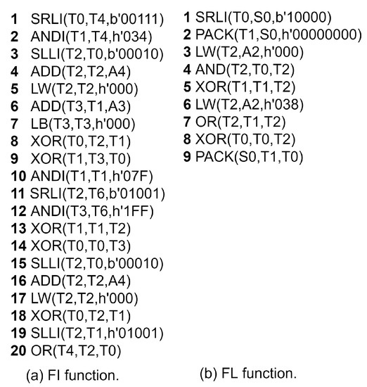Figure 11 shows the assembly implementation of the Misty FI and FL functions. The functions are described in [24].