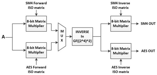- Canright, D. A Very Compact S-Box for AES. In Cryptographic Hardware and Embedded Systems–CHES 2005; Rao, J.R., Sunar, B., Eds.; Springer: Berlin/Heidelberg, Germany, 2005; pp. 441–455. [Google Scholar] [CrossRef]