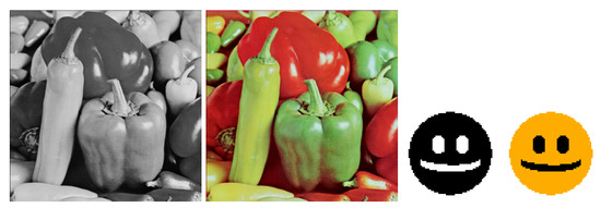 Images used in tests (dimensions of peppers: , dimensions of smile: ).