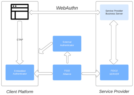 - Lyastani, S.G.; Schilling, M.; Neumayr, M.; Backes, M.; Bugiel, S. Is FIDO2 the Kingslayer of User Authentication? A Comparative Usability Study of FIDO2 Passwordless Authentication. In Proceedings of the 2020 IEEE Symposium on Security and Privacy (SP), San Francisco, CA, USA, 18–21 May 2020; pp. 268–285. [Google Scholar] [CrossRef]