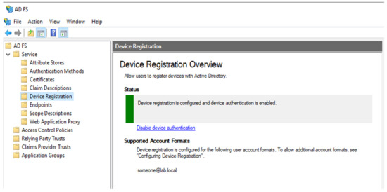 ADFS requires the CA server to validate certificates, and it will use a signed certificate from the CA server for communication and a self-signed certificate for token signing, and another one for token decryption (see Figure 6). Token signing and decryption are part of the device registration and provisioning process.