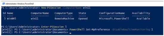 - PowerShell Set-MpPreference -DisableRealtimeMonitoring 1