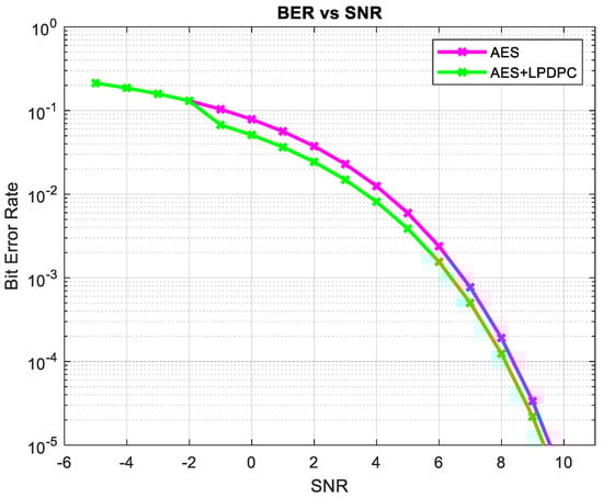 The JSALE method proposed by Eran Pisek et al. [] incorporates all the features of AES by interlacing some operations used in AES with the layers of a QC-LDPC code. This method provides high security with low BER and less hardware complexity.