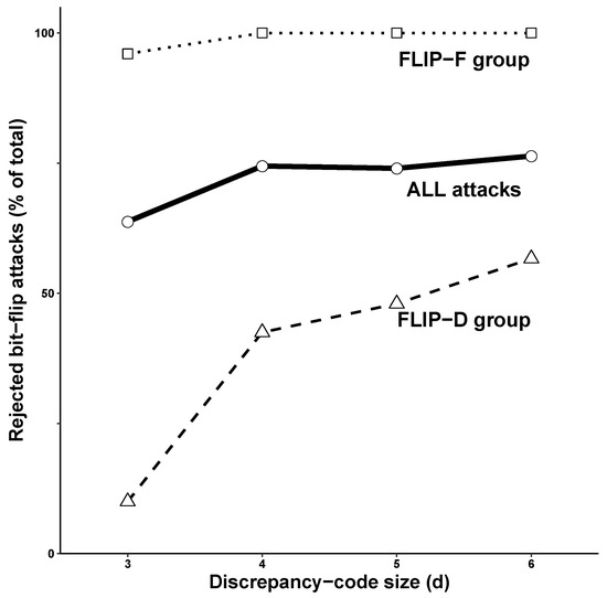 - Depending upon which bit within a c-bit ciphertext-symbol is flipped, attacks can be grouped into those that alter a failure counter (FLIP-F) and those that alter a discrepancy code (FLIP-D). Rejections are more likely during FLIP-F attacks than FLIP-D attacks. When a failure counter is altered, the keystream and ciphertext become disconnected, after which the decryption algorithm returns seemingly random outcomes. When a discrepancy-code is altered, in contrast, the keystream and ciphertext remain connected: except for one affected ciphertext-symbol, decryption proceeds normally, affecting only a few bits overall.