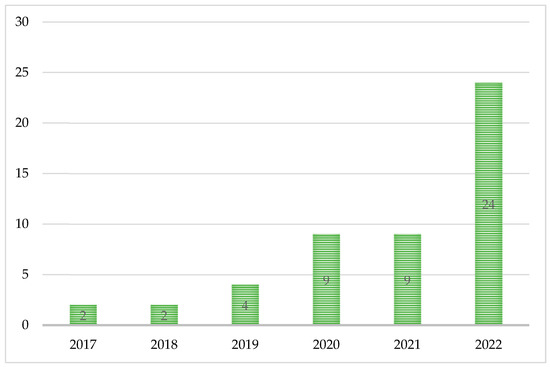 The trend of publishing articles between 2017 and 2022.