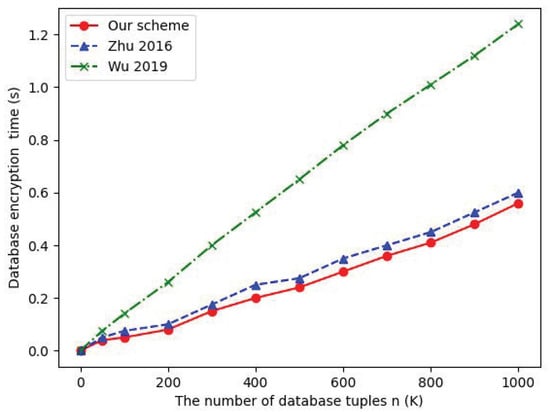 Figure 4. Average database encryption time (s) vs. n [18,19].