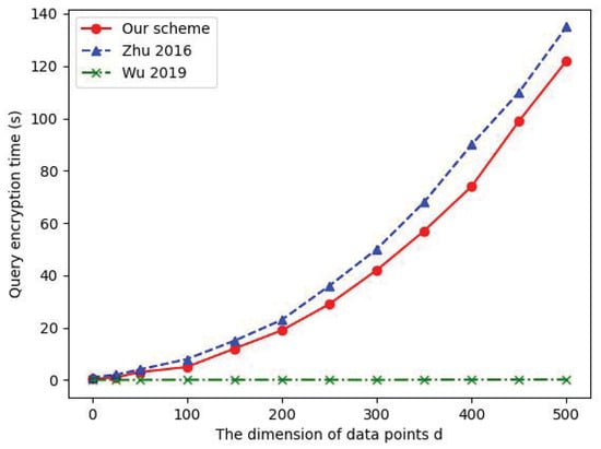 Figure 5. Average query encryption time (s) vs. d [18,19].