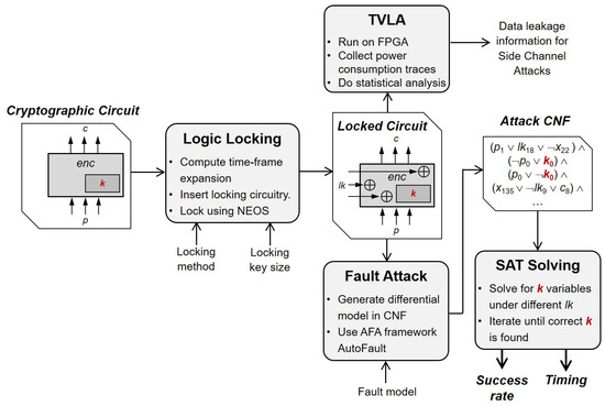 - Upadhyaya, D.; Gay, M.; Polian, I. LEDA: Locking Enabled Differential Analysis of Cryptographic Circuits. In Proceedings of the 2023 IEEE International Symposium on Hardware Oriented Security and Trust (HOST), San Jose, CA, USA, 1–4 May 2023; pp. 249–259. [Google Scholar]