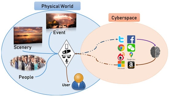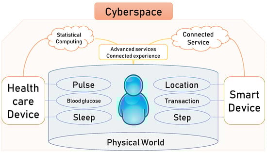 In the digital era, the unprecedented level of proactive data collection through connected devices like smartphones and IoT gadgets has highlighted significant privacy concerns. As depicted in Figure 3, data collected from the physical world are seamlessly integrated into cyberspace, contributing to a complex privacy landscape. This paradigm shift is epitomised by participatory sensing [8,9], where individuals use their devices as sensors to collect environmental data such as noise levels, traffic conditions, and temperature. This method of data collection, utilised by billions of smartphone users, offers immense benefits but also poses serious privacy concerns, especially around identity privacy.