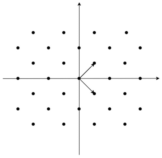 The Shortest Vector Problem (SVP) and Closest Vector Problem (CVP) are pivotal challenges within lattice theory [,]. In the context of SVP, the goal is to locate a short nonzero vector that minimizes the Euclidean norm within a lattice. Conversely, CVP aims to find a lattice vector that is closest to a given vector in Euclidean space.