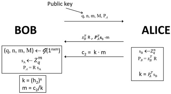 - Suppose that Alice and Bob agree to do a key exchange. The system generates a random matrix R .