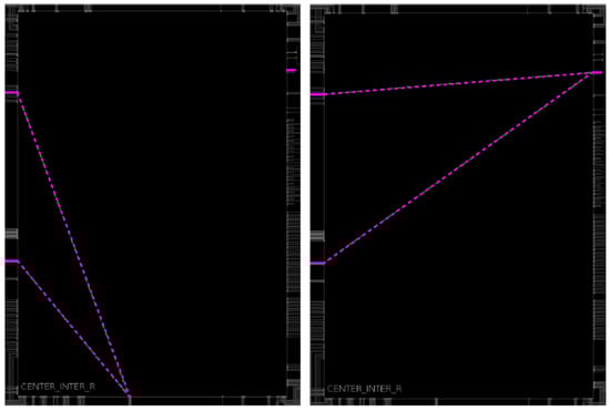 Unlike the Hand-Crafted design, placement constraints are used only to fix the placement of the LUTs implementing the logic gates and MUXs, and the Vivado P&R tool is used to create the routing structure. In order to force the P&R tool to create different routes in the BaseRoute and RouteExt designs, a timing constraint is used during the implementation of the BaseRoute, which is removed during the implementation of the RouteExt. The 13 ns timing constraint forces the P&R tool to construct a routing architecture that minimizes the number of wires and series-inserted SMs between the fixed LUT inputs and outputs. The LUT input/output nets in the RouteExt design, on the other hand, almost always utilize a larger number of wires and SMs, resulting in longer delays. The Vivado implementation views in Figure 3 show the static design of the SiRF PUF timing engine and bitstring generation algorithm on the left and BaseRoute and RouteExt DPR regions on the right.