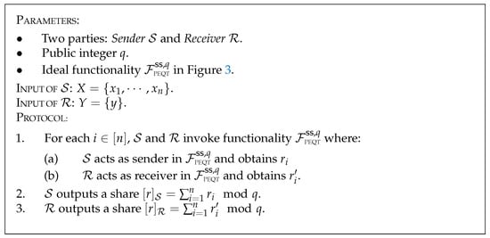 Figure 3. Secret-shared Private Equality Test F PEQT ss , q .