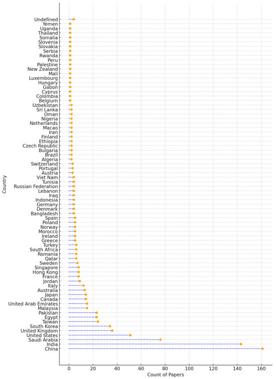 The authors’ geographic distribution shows that cryptographic techniques in AI security are highly popular worldwide, with Asia making major contributions (Figure 3). Strong research activity is seen in China and India, as China leads with 161 publications while India comes in second with 143. Their quick developments in AI and cryptography, along with large expenditures in technology and cybersecurity infrastructure, are the reasons for their dominance. With 76 articles, Saudi Arabia comes in third place, demonstrating its growing emphasis on technical innovation and safe AI frameworks as a component of its national development plans. The contributions made by the United States (51) and the United Kingdom (36) highlight the significance of these nations as research centers, with a particular focus on developing cryptographic techniques to tackle the security issues of AI systems.