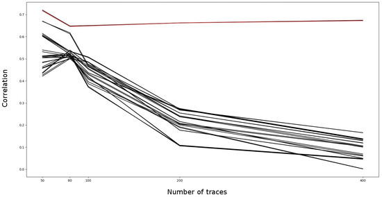 Figure 6. Evolution of correlation for the main pair candidates up to 400 traces.