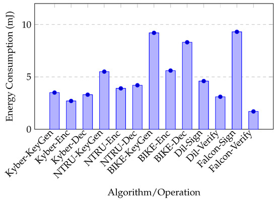 - Mera, J.F.; Karmakar, A.; Verbauwhede, I. Energy analysis of post-quantum cryptography algorithms on IoT devices. IEEE Internet Things J. 2020, 8, 1020–1030. [Google Scholar]