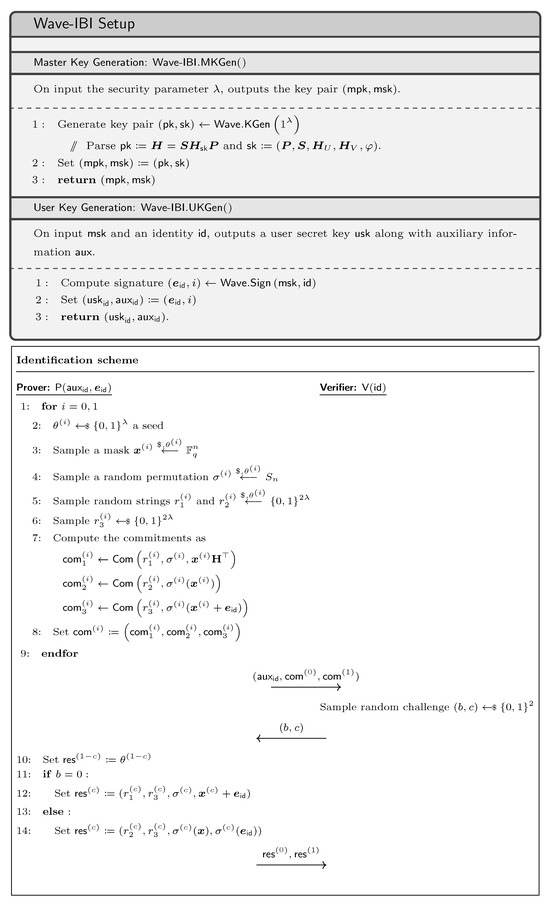 - Song, B.; Zhao, Y. Provably secure identity-based identification and signature schemes from code assumptions. PLoS ONE 2017, 12, e0182894. [Google Scholar] [CrossRef] [PubMed]
