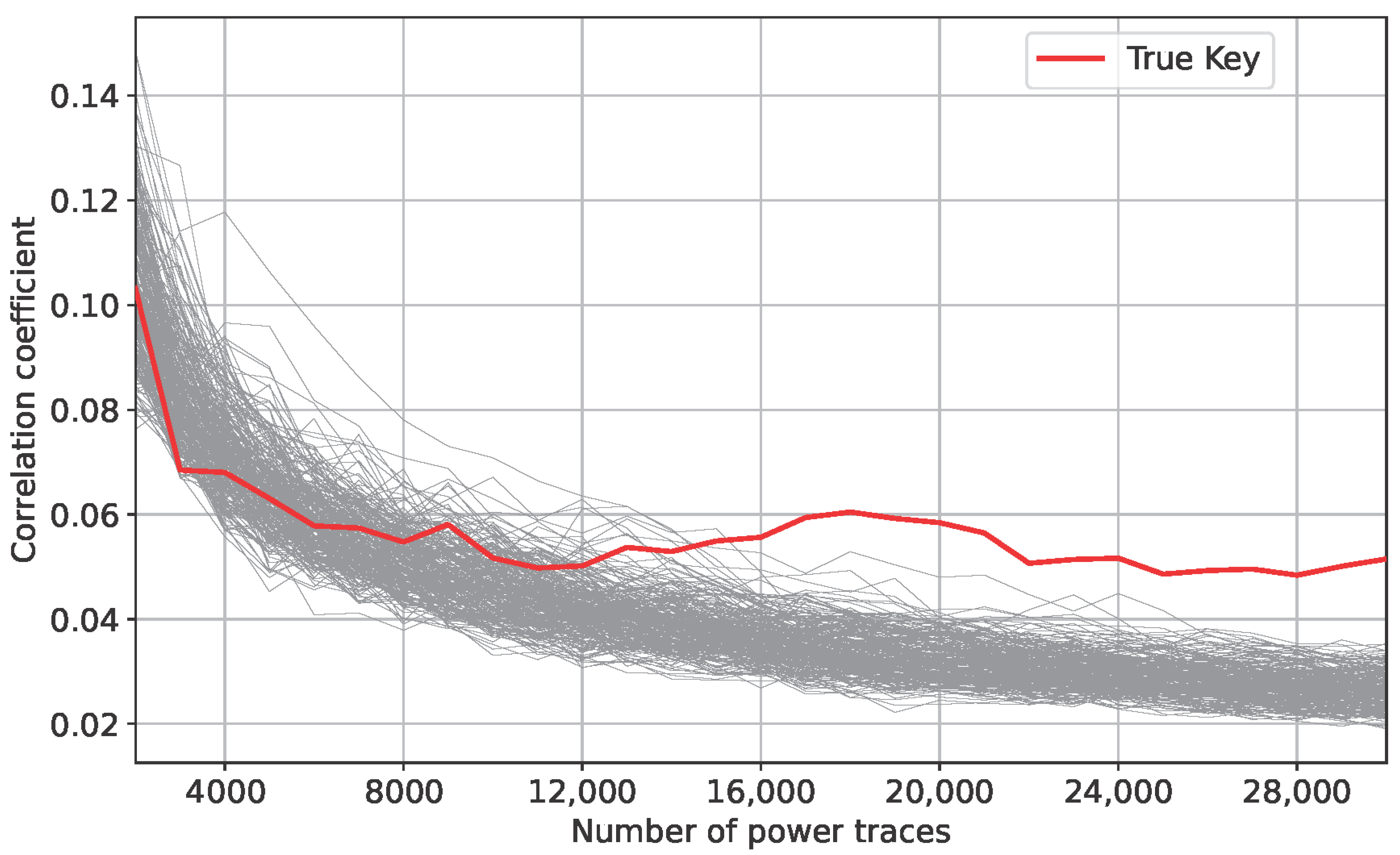 - With the AES S-Box, approximately 9000 traces were sufficient to recover 14 out of 16 key bytes, with the most difficult byte requiring about 11,000 traces.