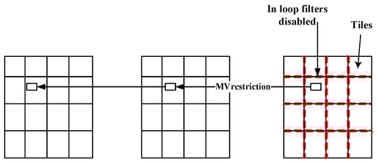 - The MVs of the predicted block are restricted to point only to the co-located tile of the reference frame.