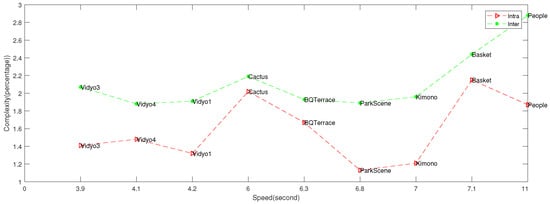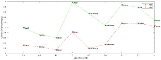 BD-rate and complexity of the proposed encryption system in Intra and Inter coding. Nine video sequences, encoded by Kvazaar ( tile configuration), are used.
