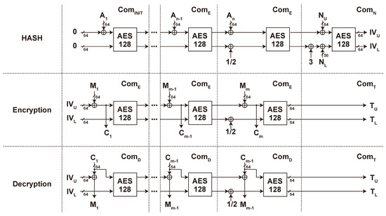 - Dworkin, M. Special Publication 800-38D: Recommendation for Block Cipher Modes of Operation: Galois/Counter Mode (GCM) and GMAC; National Institute of Standards & Technology: Boulder, CO, USA, 2017.