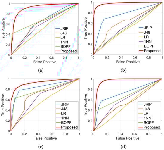 As described before, Bag-of-Pattern-Features based time series classification approach is one of the recent fast time series classification algorithms that have a significantly low time and computational complexity compared with other existing time series classification approaches while maintaining a very high accuracy. As a result, for a comprehensive comparison of StealthMiner with state-of-the-arts, we implemented different ML-based HMD techniques and time series classification presented in recent prior works including JRip [,,], J48 [,,], Logistic Regression [,,], KNN [,], and BOPF [] that are representing the rule-based, decision tree, regression-based, and time series machine learning classifiers and have demonstrated high accuracy for detecting malware (spawned as a separate thread) in recent works.